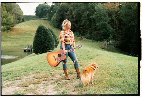 Miranda Lambert poses with her dog and a guitar. (Photo Credit: Acacia Evans)