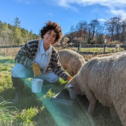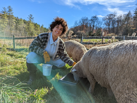 Haydee Borrero of Sheepy Hollow LLC in Ithaca, New York, who runs a mixed-use farm as the sole full-time worker. Brighter Future Fund support allowed Haydee to purchase a handling system to conduct routine health checks and treatment protocols for her flock of American Romney sheep. These sheep can grow to be more than 220 pounds, making them unwieldy to manage. The handling system will help make the farm a safer workplace and a more efficient livestock producer.